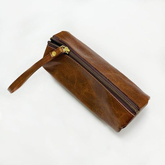 Tubular Leather Toiletry Pouch