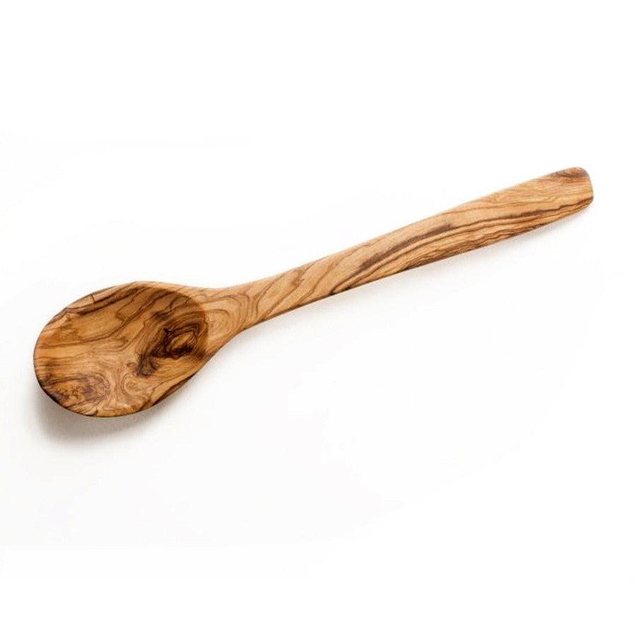 This Olive Wood Cooking Spoon is designed and carved in Jordan. The beautiful grains in the wood make this piece as exceptional and unique as the hands that carved it. This kitchen item is made from a cut of wood coming from the trimmings of natural olive trees and formed by a local artisan who is benefiting from fair trade business practices.
