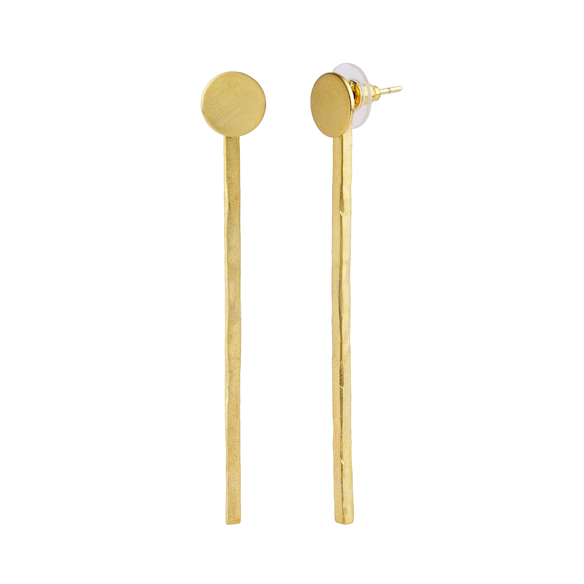 Our artisan crafted Dotted I brass earrings are so versatile. The "Dot" is attached to the post and can be worn with or without the hanging "I" bar. Also, the bar can be worn in front of or behind the ear. Your purchase helps sustain women’s jobs in North India bringing empowerment and dignity.
