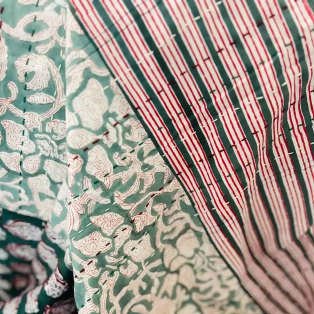 Each of these patchwork quilts are made from a variety of beautiful, hand block printed cotton fabrics. Each piece is soft, strong, and unique, reflecting the artisans that make them.
